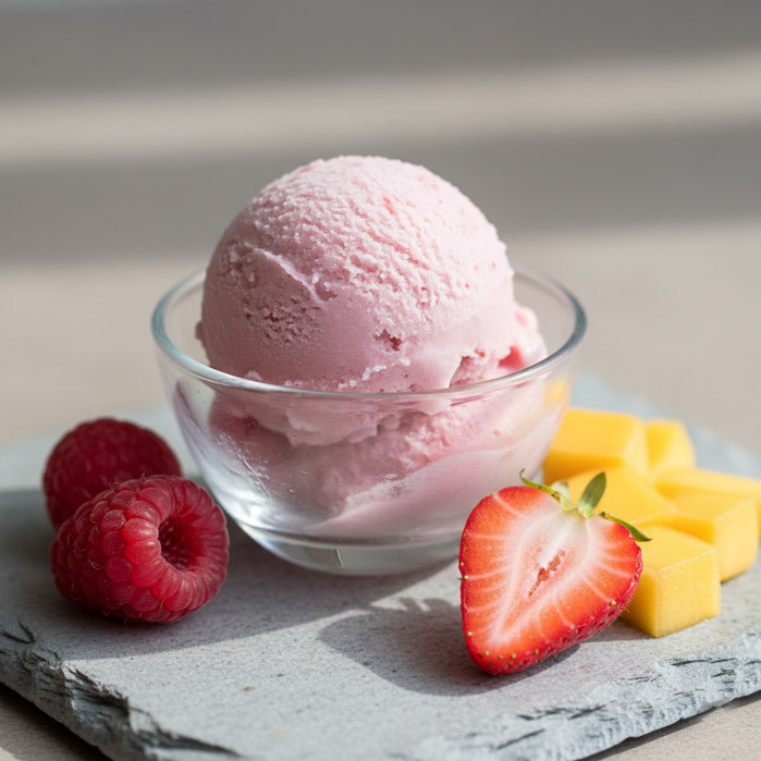 Jedes Sorbet enthält mindestens 50% Frucht, ist vegan und kaktosefrei. Der Geschmack kommt direkt aus der Frucht – klar, intensiv und natürlich. Ob klassisch oder besondere Kompositionen mit Kräutern und floralen Noten. Unser Fruchteis ist erfrischend ehrlich und bewusst reduziert auf das Wesentliche.